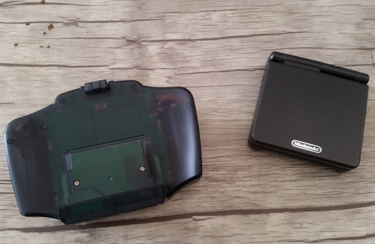 Gameboy Advance with TV module. The TV module received with an adapter the video signal from the mini cam.